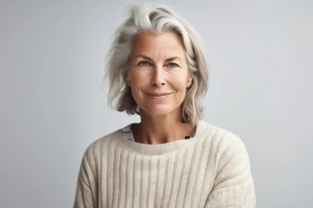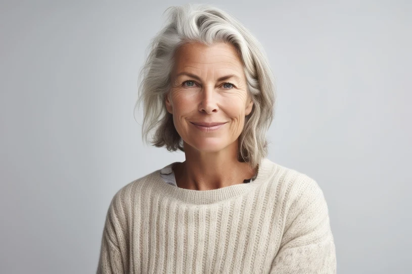 Kolejną propozycją dla miłośniczek nieco dłuższych fryzur jest clavi cut, czyli modna długość sięgająca obojczyków z delikatnym cieniowaniem. To cięcie dodaje siwym włosom objętości i ruchu, a dzięki możliwości dobrania grzywki, na przykład w stylu curtain bangs, można uzyskać jeszcze bardziej odmładzający efekt. Clavi cut sprawia, że twarz staje się łagodniejsza i nabiera świeżości niezależnie od koloru włosów.